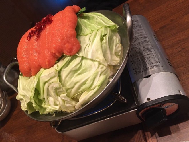 編集長とインターン仲間のたいがくんと突ついた明太子モツ鍋は泣ける味でした